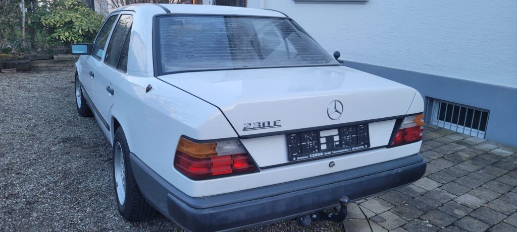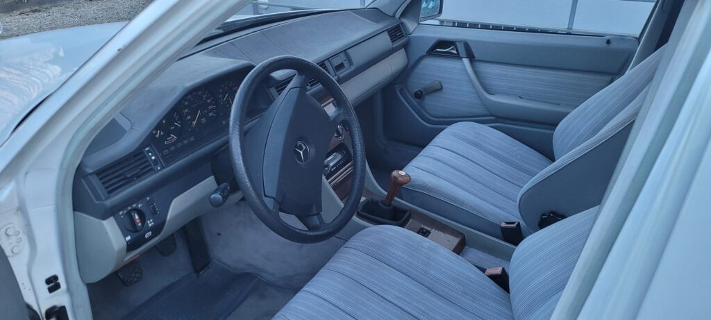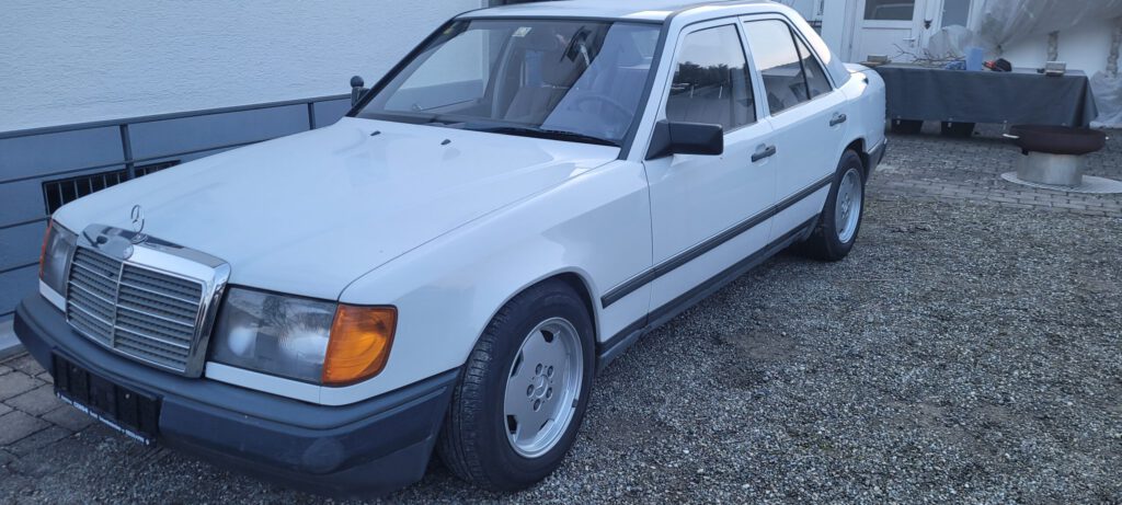 Dieser Vor-Mopf W124 wurde im Februar 1988 im Werk Sindelfingen produziert und im März 1988 in Spanien ausgeliefert und erstmals zugelassen. Dort wurde er von einem deutschen Immobilienunternehmer lediglich als Ferienfahrzeug in seinem Ferienhaus benötigt. 2012 erfolgte in Spanien erstmals ein Eigentümerwechsel, jedoch auch nur als Ferienfahrzeug für das Ferienhaus. Dies erklärt den außergewöhnlich geringen Kilometerstand und den hervorragenden rostfreien Zustand der Karosserie sowie den sich völlig unverbraucht zeigenden Innenraum. 2016 Erfolgte der letzte Eigentümerwechsel in Spanien, 2023 wurde noch in Spanien eine Hauptuntersuchung bei der dortigen Prüforganisation durchgeführt, die der Wagen erfolgreich bestanden hatte. Anschließend wurde der Wagen von dem Eigentümer mit in die Schweiz gebracht. Da nach 36 Jahren nun doch das eine oder andere zu tun ist, sollte der W124 in sachkundige Hände kommen, um ihn wieder auf die Straße zu bringen und in Deutschland das H-Kennzeichen zu erzielen. Da sind wir ins Spiel gekommen.